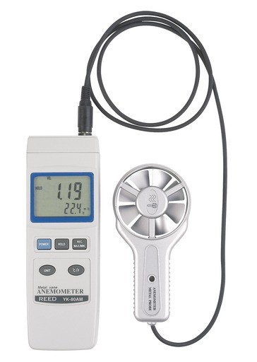 Specifications: Air Velocity Range/Resolution: 0.4 to 35.0 m/s / 0.1 m/s; 1.4 to 126kph / 0.1 kph; 0.9 to 78.3 mph / 0.1 mph; 79 to 6890 fpm / 1 fpm;0.8 to 78.1 knots / 0.1 knot Accuracy: ±(2% RDG + 2 digits) Temperature Range/Resolution: 32 to 140°F / 0.1°F (0 to 60°C/0.1°C) Accuracy: ± 0.8°C Power Supply: Single 9V battery Dimensions: 8 x 2.7 x 1.2" (200 x 68 x 30mm) Weight: 7.75 oz (220g)